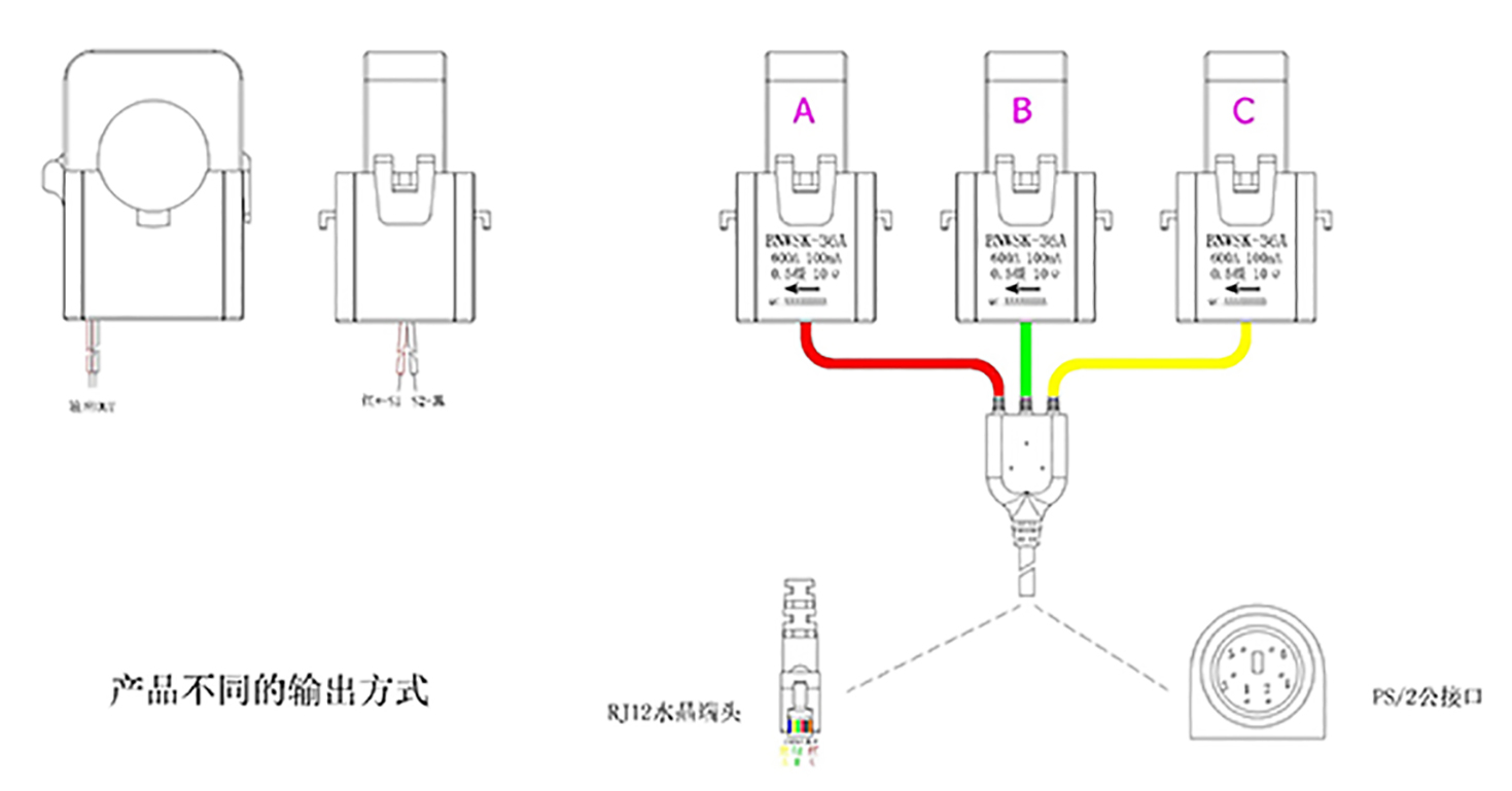 提供多种组合输出方式:输出安培级电流时可单独用PVC护套线接端子,输出毫安级电流可选择三相一体式采集端子,多种信号接口选择